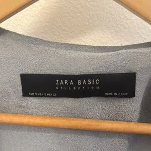 Zara Basics Blue/Gray Suede Open Jacket with Relaxed Silhouette