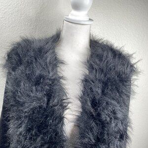 Great Pre-owned Condition Lisa International Blazer Coat Women's Black Sz XL Faux Fur Trim Mob Wife VTG