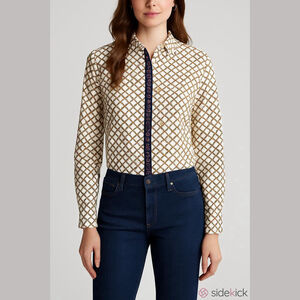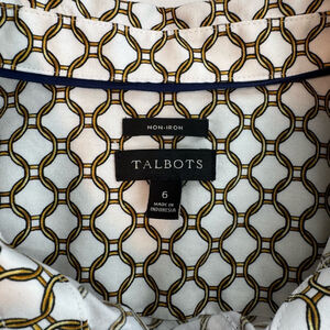 Talbots Button Up Shirt Womens 6 White Non Iron Chain Print Long Sleeve Office