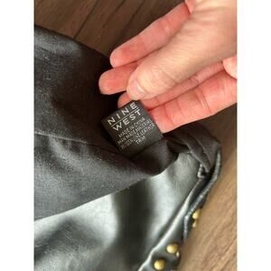 Y2K Nine West Black Leather Iron Cross Stitched Gold Studded Hobo Grunge Bag