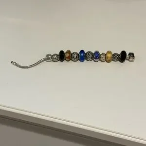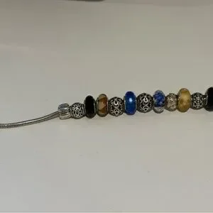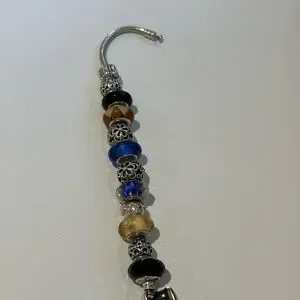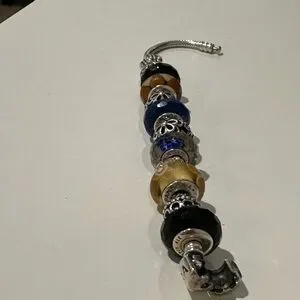 Pandora Silver Charm Bracelet with Blue and Black Beads