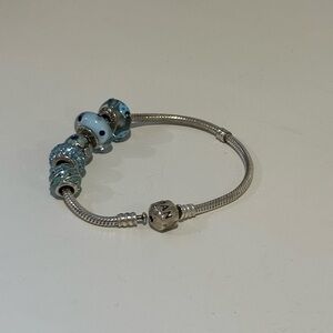 Pandora Silver Charm Bracelet with Blue Accents