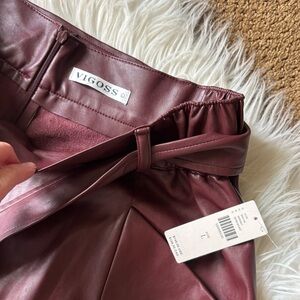 Anthropologie Vigoss NWT Coralia Faux Leather Midi Skirt Wine Bordeaux Large L