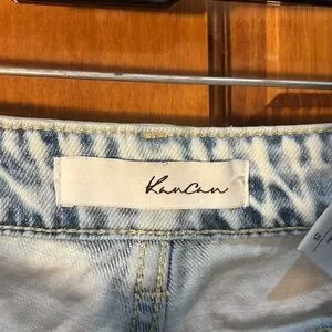 Experience the edgy style of KanCan's blue jean shorts, featuring a high-waisted fit and heavy distressing for a modern, worn-in look. The light wash denim offers a unique pale blue hue, perfect for casual outings. Enjoy the raw hem and rigid denim material that add to the trendy appeal.