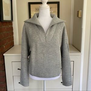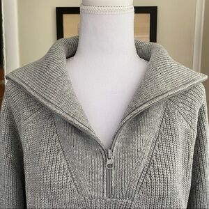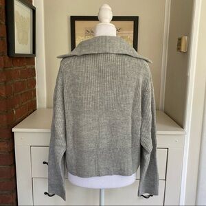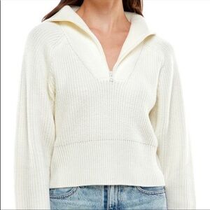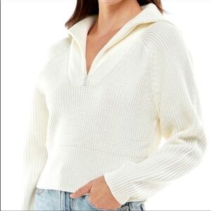 A classic rib stitch keeps your look cozy in a casual-cool sweater with a half-zip placket and an oversized collar.