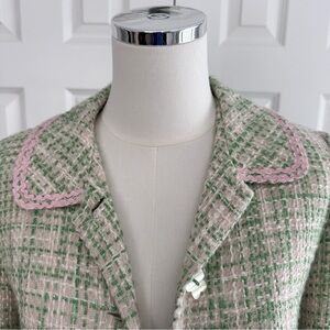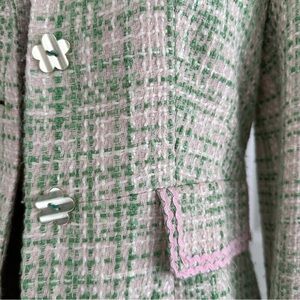 This elegant green tweed coat offers a sophisticated look for any occasion. Its classic design and comfortable fit make it a must-have addition to your wardrobe.
