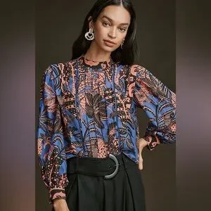 ![[NWT] $165 FARM RIO Tropical Gold Blue Pleated Long Sleeve Blouse. Size Small - Picture 1 of 12](https://di2ponv0v5otw.cloudfront.net/posts/2025/06/08/68465de7b6af92ec9b9570a0/m_wp_68465e1121bd429d08a35816.webp)