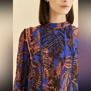 ![[NWT] $165 FARM RIO Tropical Gold Blue Pleated Long Sleeve Blouse. Size Small - Picture 3 of 12](https://di2ponv0v5otw.cloudfront.net/posts/2025/06/08/68465de7b6af92ec9b9570a0/m_wp_68465f44f59cc4ad71ccdaf8.webp)