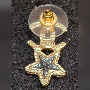 Chanel earrings with sparkling crystals. Features a gold heart and black star design.