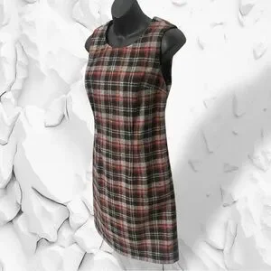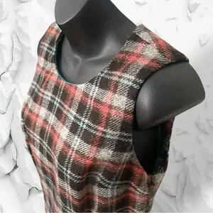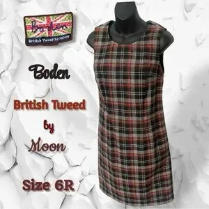 Boden British Tweed by Moon Plaid Dress Size US 6R UK 10R Brown Pink