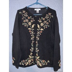 Jeweled cardigan sweater. Size medium. Preloved. Has some strings need cut off but good condition, measurements in pictures.