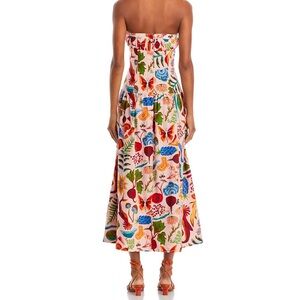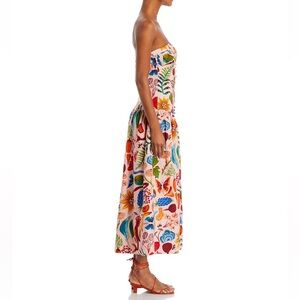 NEW WITH TAGS! Vibrant floral print maxi dress perfect for any occasion. Features a colorful design that stands out. Strapless, but comes with replaceable straps to attach to existing loops. Bustier look makes dress super flattering!