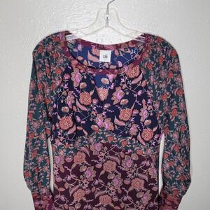 Cabi Festive Keyhole Maxi Kaftan Mixed Print Lined Boho Dress sz Sm Style 3675