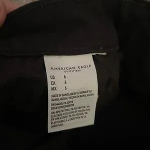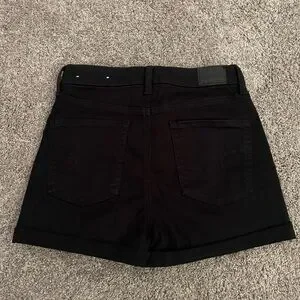 These high waist shorts from American Eagle Outfitters offer a sleek and modern look with their deep black color. Crafted from a sturdy fabric, they provide both comfort and durability for everyday wear. The neat construction and classic design make them a versatile addition to any wardrobe.