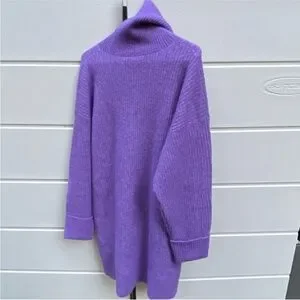 & Other Stories Oversized Turtleneck Knit Sweater Ribbed Alpaca Blend Purple