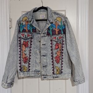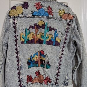 Beautiful Vintage Handpainted By Uma Denim Jacket With Desert Design.