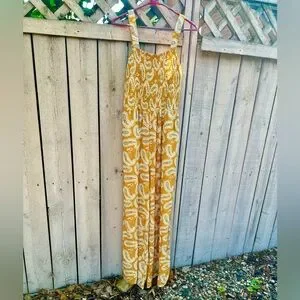 Embrace vibrant style with this comfortable mustard/yellow paisley jumpsuit.