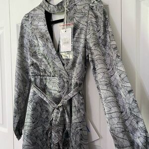 NWT SILVIAN HEACH Elegant Silver Wrap Dress Italy 38