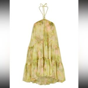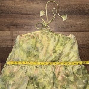 MISA Los Angeles Size Small Sastra Mini Dress In Chartreuse Abstract Halter Neck
