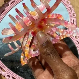 Add a touch of elegance with this pink butterfly hair clip. Perfect for any occasion.