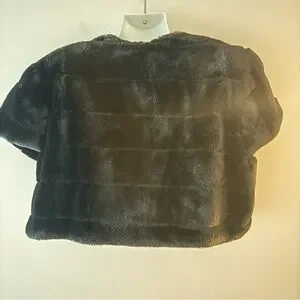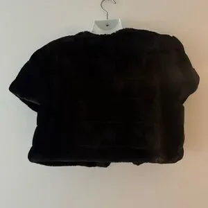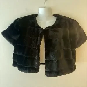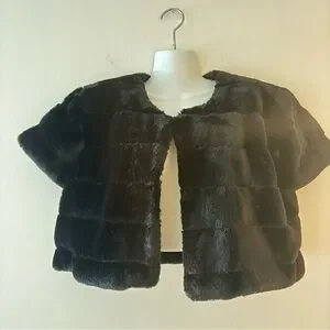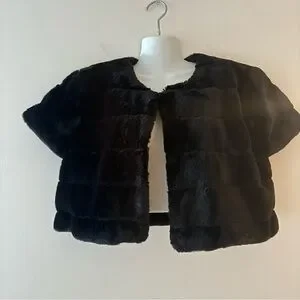 Luxurious faux fur vest bolero. Short sleeves. Open front design. Perfect for layering. Measuring photos.