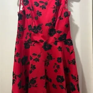 City Studio Red Dress with Black Lace Detail