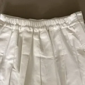 Sangtree pleated white tennis skirt with shorts. Features sewn down pleats, side zipper & elastic back waist. Size 12.