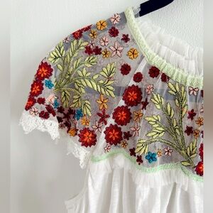Free People Mesh Floral Embroidered White Bubble Blouse