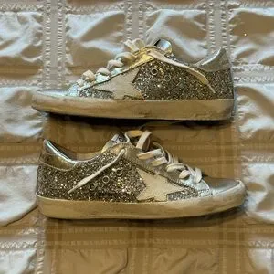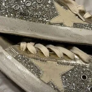 Golden Goose GGDB Private Edition SUPER STAR Sneakers. Size 37. Private Edition. #702 of 922. Platinum/Creme Brûlée/Platinum glitter. #704 of 922 made. A Nieman Marcus exclusive! Come with dustbag. No box/passport.