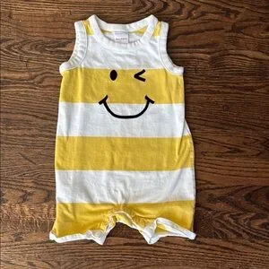 Hanna Andersson Yellow and White Striped Smiley Face Romper