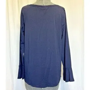 Chico's Navy Blue Bell Sleeve Pima Cotton Modal Tunic Top Size 2 Large