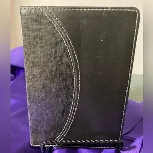 KJV Compact Bible, black leather cover , underlined verses, & markings on back cover. 4” x6”