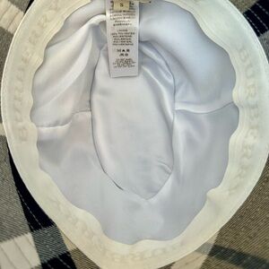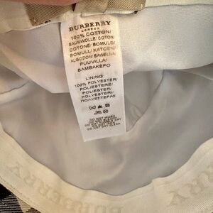 Chic Burberry hat with classic check design. Features a stylish white band.
