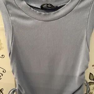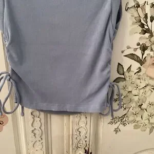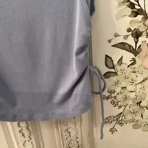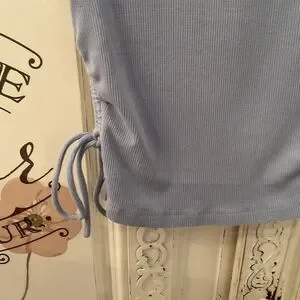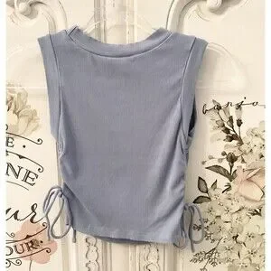 Lulus New Level Tank Women's XS Dusty Blue Ribbed Ruched Cropped Top