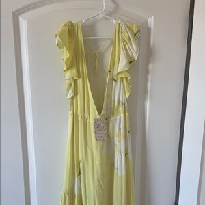 NWT Free People Floral Waterfall Maxi Dress Lemon Ice Yellow