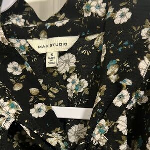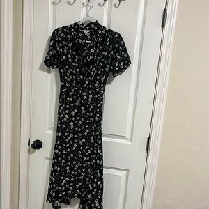This elegant sundress by Max Studio features a classic floral pattern, perfect for a wedding guest or cocktail occasion. The midi-length dress is designed with a flattering neck tie and short flutter sleeves, offering a feminine and sophisticated look. Excellent condition.