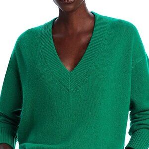 Aqua Cashmere Green Drop Shoulder V Neck Sweater Size L NWT