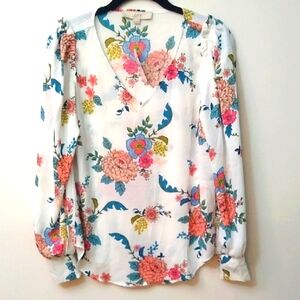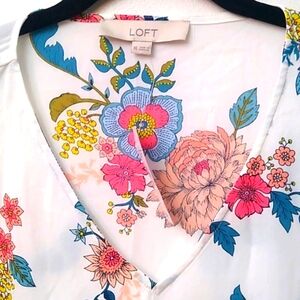 LOFT Floral V-neck Puff Sleeve Blouse, XS, NWT