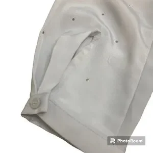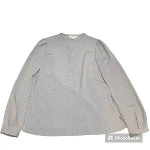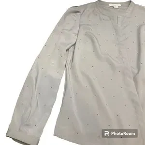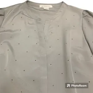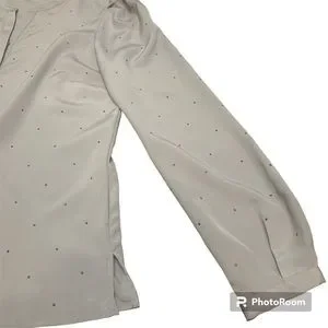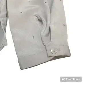 Liz Claiborne Silver Long Sleeve Dressy Rhinestone Button Up Blouse Ladies Sz S