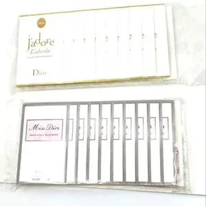 Dior fragrance set featuring J'adore L'absolu and Miss Dior Absolutely Blooming. Luxurious and sophisticated sample sachets.