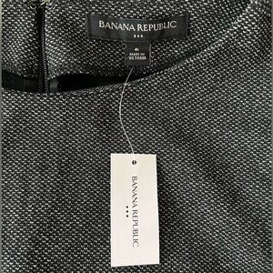 This sophisticated black dress by Banana Republic showcases a sleeveless design with a chic scoop neckline. Its fit and flare silhouette, crafted from a structured fabric, is ideal for both work and cocktail events. The defined waistline and A-line skirt offer a timeless elegance to this formal piece.
