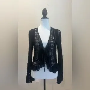 This elegant black lace top is perfect for any occasion. Its intricate design adds a touch of sophistication to your wardrobe.