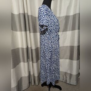 Step out in style with this fun blue and white floral dress. Perfect for any Summer occasion, this dress offers a flattering fit and timeless design.