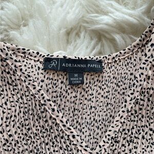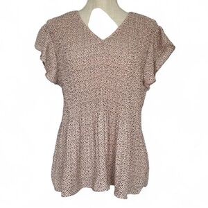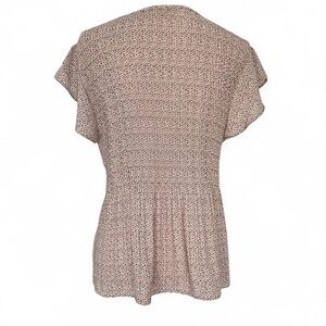 Adrianna Papell Leopard / Cheetah print flowy lightweight pleated chiffon peplum top with ruffled short sleeves