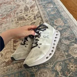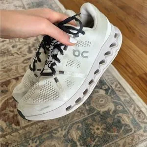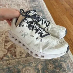 Lightweight cream shoes with black detailing. Ideal for running and everyday use.