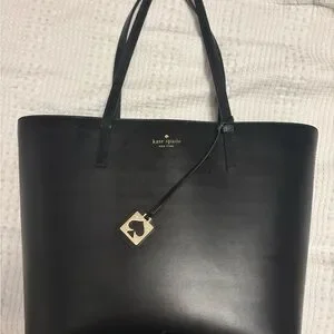 This sophisticated Kate Spade tote in black leather exudes elegance with its structured design and high-quality matte finish. Ideal for formal or business settings, it combines luxury with practicality, making it a timeless addition to any wardrobe.