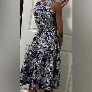 Super cute ACEVOG dress featuring a striking purple and white floral pattern, with functional back tie belt, always got compliments wearing this. Good used condition, would fit XS-S