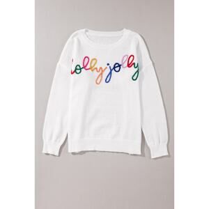 The White Holly Jolly Round Neck Casual Sweater by Holiday is a festive and cozy addition to any woman's wardrobe. Made of polyester, this long sleeve pullover sweater features a round neckline, perfect for staying warm during the winter season. The white color and Christmas theme add a touch of holiday cheer to any outfit, making it a versatile and stylish choice for the season. Available in size S, this sweater is sure to become a favorite for the holiday season and beyond.
