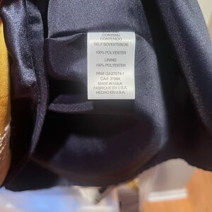 Stylish giraffe print skirt. Beautiful brocade fabric in a navy, dark yellow, cream. Self tie fabric belt. Back hidden zipper. A-line style. Fully lined. No pockets. Fabric is structured and stiff to hold shape. Size 12, Made in USA .