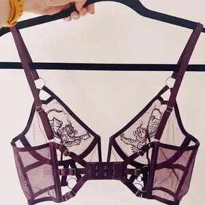 Thistle and Spire Tigris Bra - 36B - Embroidered Tigers Mesh - Purple